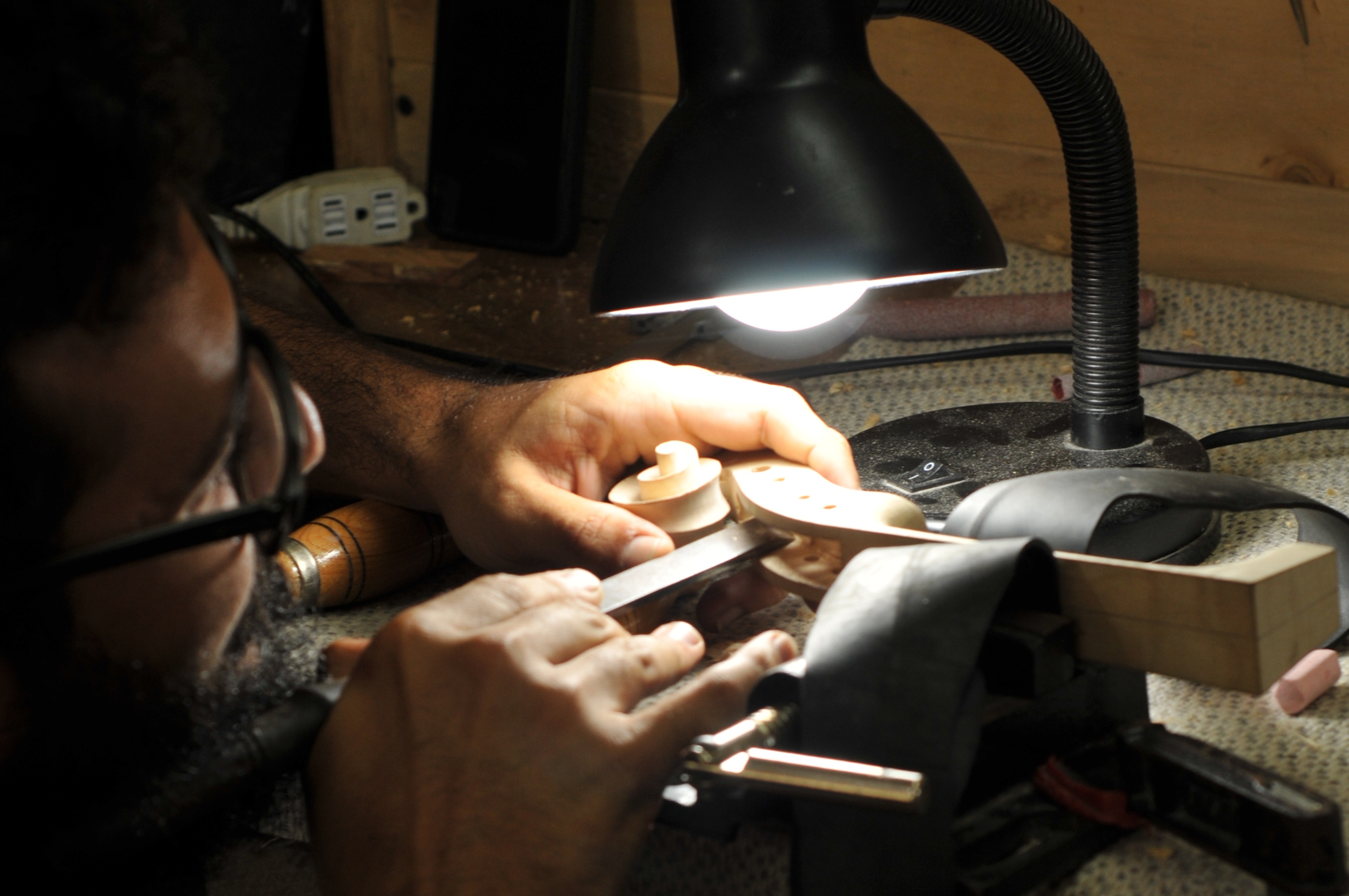 Eserna Luthiers es un taller con más de una década de experiencia en la construcción de guitarras profesionales, formado sobre bases sólidas de tradición y excelencia artesanal. Con una trayectoria reconocida y un compromiso con la enseñanza de la luthería, ha acompañado procesos de formación de nuevos constructores y músicos en distintas regiones. Hoy, en una apuesta por unir saberes y expandir horizontes, Eserna Luthiers se une con Liutaios para desarrollar violines que integren lo mejor de ambas experiencias. Esta alianza da origen a una nueva línea de instrumentos de cuerda frotada.